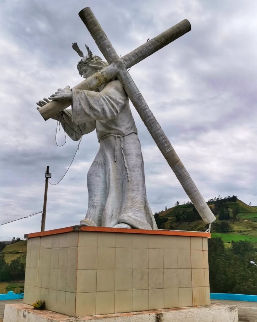 Uno de los principales atractivos turísticos y espirituales de la parroquia Santa Fe, ubicada en el cantón Guaranda, es el impresionante Monumento a Jesús del Gran Poder. Esta imponente escultura religiosa se alza majestuosa sobre una colina, a tan solo 5 minutos del centro parroquial, convirtiéndose no solo en un punto de devoción, sino también en un mirador natural con vistas privilegiadas del entorno andino.